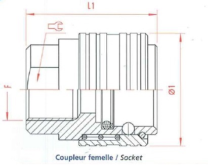 coupleur hydraulique LL0702100 verrouillage à billes femelle laiton nickelé Taille 3/8", taraudé 3/8"G, joint NBR, passage libre