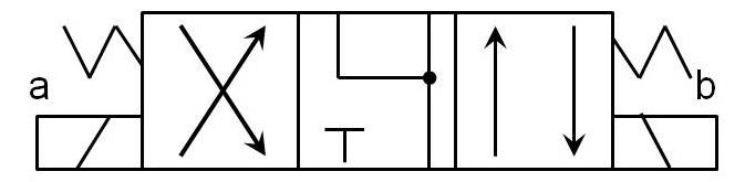 Distributeur tout ou rien (ON/OFF), plan de pose NG6, 4 ORIFICES 3 POSITIONS, tension d'alimentation 110VAC Livré sans connecteur. Schéma de tiroir : CROISE/PARALLELE, A ET B AU T